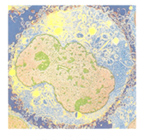 This image is a view of a human cell taken from an electron microscope. The human cell is the fundamental element of living organisms. It is so tiny that it cannot be seen through a conventional microscope. This cell is filled with nutrients (various chemicals, metals, and acids that exist in a biological state).